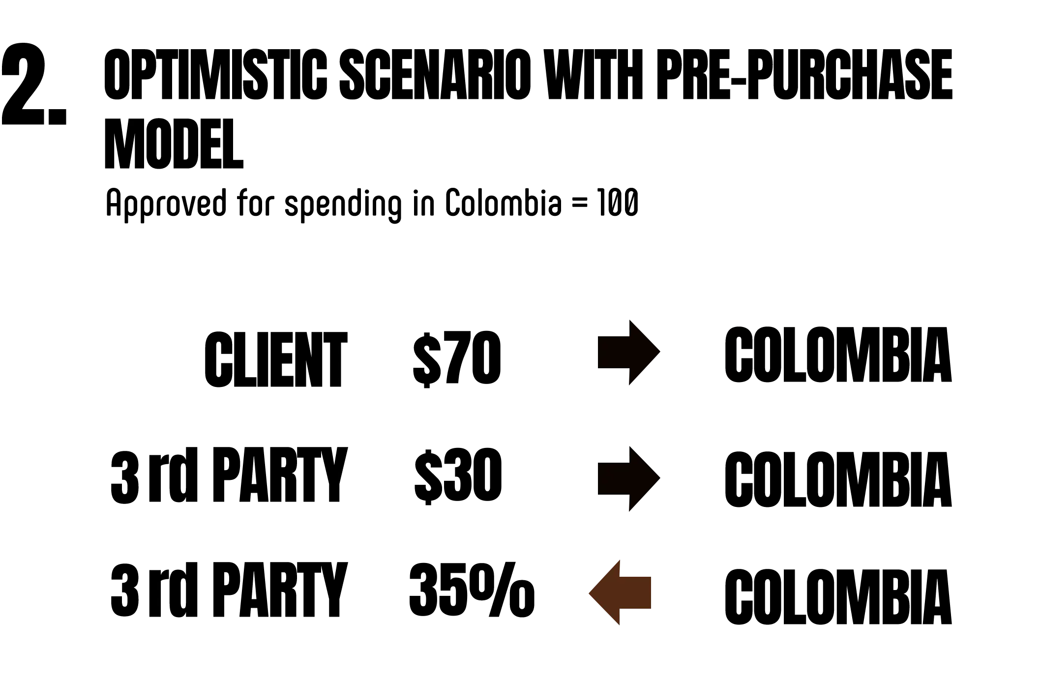 - Todo el gasto debe realizarse a través de entidades o personas colombianas.